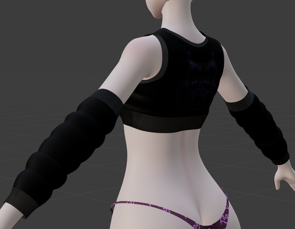 Model shown with blender shaders, similar look achievable with poiyomi shaders (free on his discord).