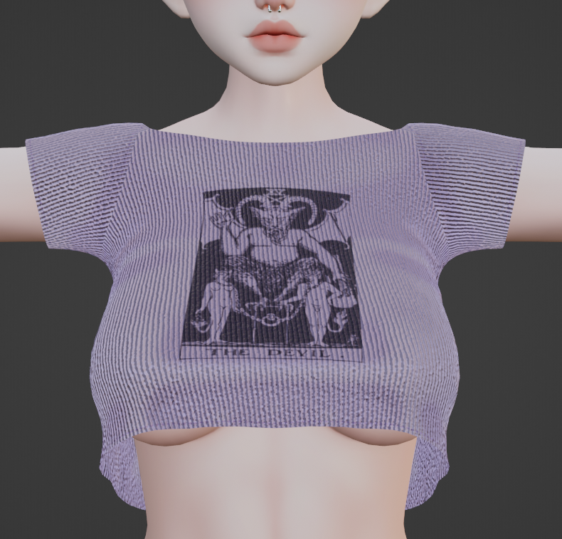 Lavender Tarot Crop Top - Lilac The Devil T-shirt - FBX VRChat Clothing *2023* Commercial use
